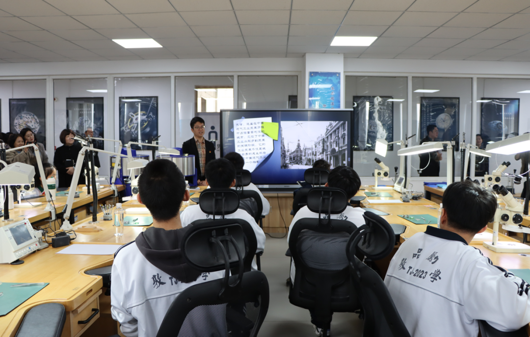 为进一步深化大中小学思政课协同发展,拓宽大中小学教学资源共享渠道,打通各个学段思政课衔接壁垒,近日,由天津海河教育园区思政联盟主办的“沽上百年 匠心领航”大中小学思政课一体化实践教学活动在天津现代职业技术学院举行。来自南开大学、天津现代职业技术学院、咸水沽第一中学、津南区实验小学的30余名大中小学生们携手走进“钟鸣盛世”非遗传承基地和空间智能产教融合实践中心,以实地调研、小组讨论、实操体验的方式开启了一场生动无比的思政课学习探索之旅。